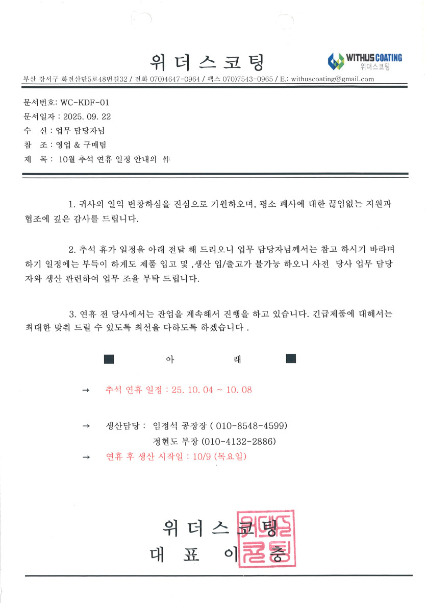 25년 추석 연휴 일정 안내 페이지 정보 작성자 최고관리자 작성일 25-10-03 09:07 조회 17회 댓글 0건 본문 추석 연휴 일정 안내 공문 입니다.참고 하시기 바랍니다.감사합니다 다음글25년 여름 휴가 일정 안내 목록 댓글목록 0 댓글목록 등록된 댓글이 없습니다.